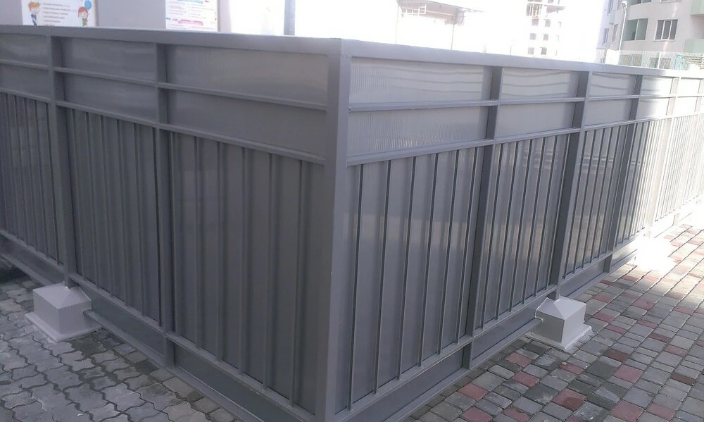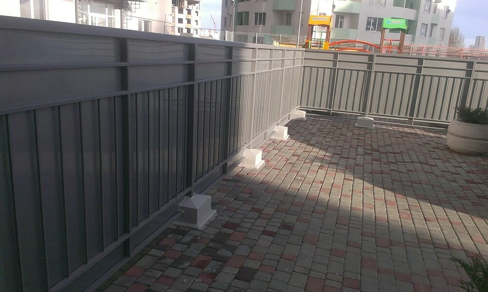 Полікарбонат є легким та стійким до зовнішніх впливів, тому відмінно фиконує функцію тимчасової огорожі.